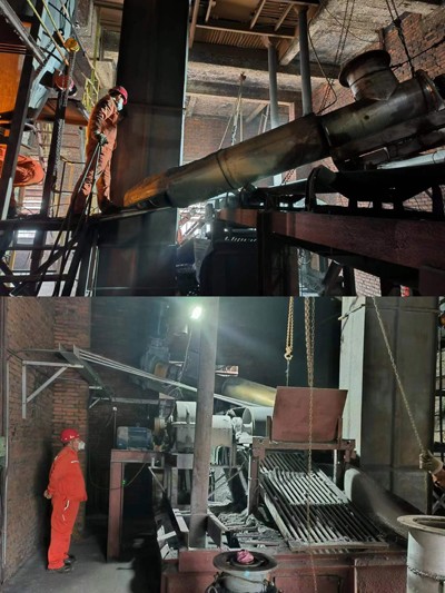 29日晚18點,釩業(yè)1號窯尾發(fā)生下料螺旋卡死故障,檢修中心積極抽調(diào)焊工、起重、鉗工多工種進行搶修,29日晚,焊工拆除螺旋支架及下料口,30日早6點半,起重及鉗工進行拆卸及更換安裝,歷經(jīng)15個多小時的搶修,在30日晚21點1號窯恢復正常生產(chǎn)。
