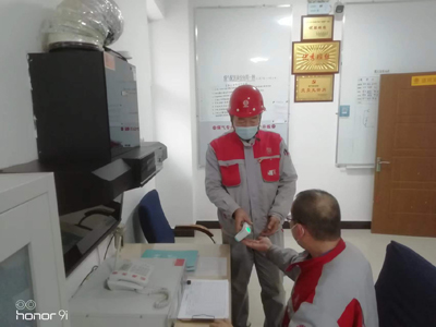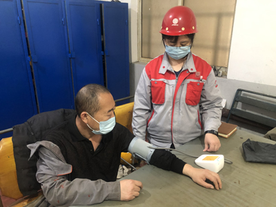 技術管理任芝灝利用休息時間,主動為在崗員工測量血壓,監(jiān)護員工身體健康狀態(tài),及時記錄在案。