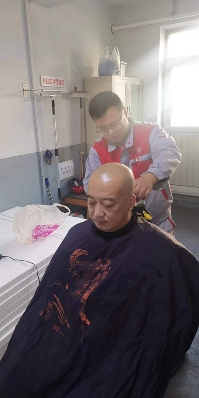 ——退休返聘老黨員關世偉,和同事們一起堅守在生產(chǎn)一線。雖然值夜班、協(xié)助安排住宿人員管理、組織物資發(fā)放,慰問員工任務繁重,他依然毫無怨言地面帶微笑,用他任勞任怨和無私奉獻的精神影響著身邊的每一個人。