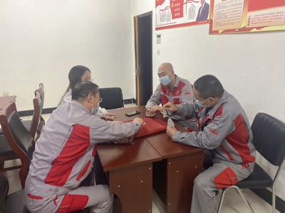 面對住宿員工手機充電難的問題,支部黨員為每個休息室安裝插排,解決員工急難愁盼問題。為豐富住宿員工的休閑生活,支部購買了撲克、軍棋、象棋、跳繩、毽球等各類棋牌及健身用品,將事業(yè)部四樓改為電影放映室,將二樓改為乒乓球室,方便員工休閑放松。黨員與群眾打成一片,休閑放松的同時更加凝聚了團隊的精神氣兒,在黨員的帶領下,越來越多的正能量在員工中傳遞。