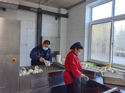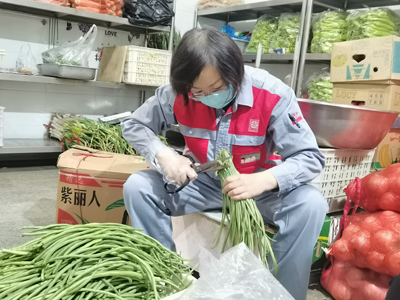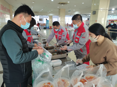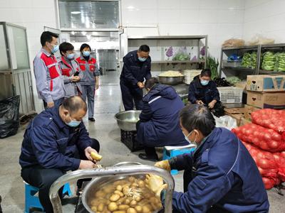 民以食為天,生活最離不開的就是柴米油鹽。員工食堂38人每天都要保質(zhì)保量地為公司及中信鈦業(yè)2200位閉環(huán)在崗員工提供四餐的服務保障。人員緊缺是擺在他們面前的最大難題。管理系統(tǒng)在崗32名人員主動分組幫廚,有時趕上工作忙脫不開身,只要在微信群里報備,就會有其他成員默默趕來幫忙。安全環(huán)保部趙麗敏、于蔭、郭忠旭、李建明有的留宿廠內(nèi),有的住在廠區(qū),在短暫的休息時間里也參與幫廚,讓員工食堂人員在忙碌中體會到大家庭的溫暖。