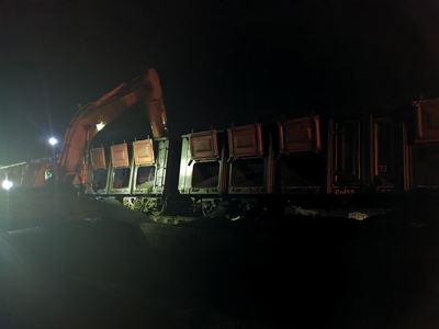 錳產(chǎn)品事業(yè)部焦炭告急!國貿(mào)公司緊急將3500噸焦炭由汽運改為火運。運抵當晚22時左右,國貿(mào)公司5名機車員和2名保管員、20多名勞務人員連夜奮戰(zhàn)12小時,將48節(jié)車皮焦炭卸車完畢。