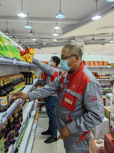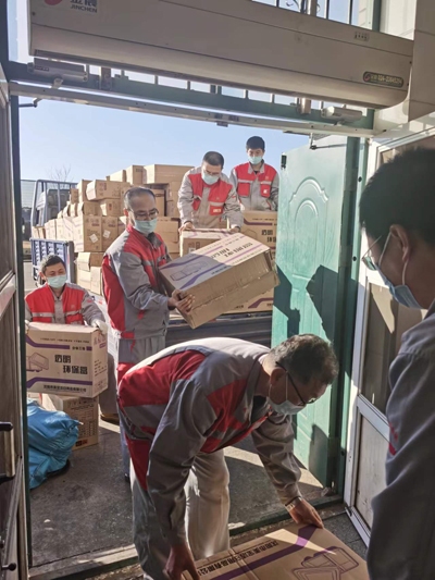 員工食堂餐盒、餐筷供應告急!錦州地區(qū)無法采購到貨源,國貿(mào)公司立即與葫蘆島市供應商聯(lián)系補貨,安排專人到高臺橋接車?吹絾T工食堂人手緊缺,國貿(mào)公司業(yè)務員轉(zhuǎn)換為搬運工,將739余件餐盒、餐筷搬運到位。