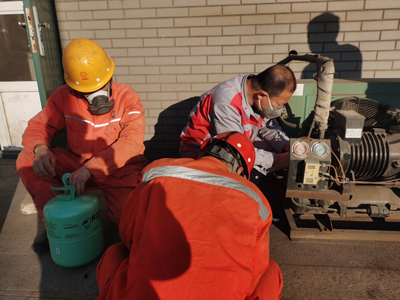 員工食堂冷庫突發(fā)故障且無法補充氟利昂,意味著緊急采購的大批食材很快失去保鮮。生產(chǎn)協(xié)同部立即安排人員自制轉(zhuǎn)換接頭,為員工食堂冷庫壓縮機充氟,保證正常存儲食材。
