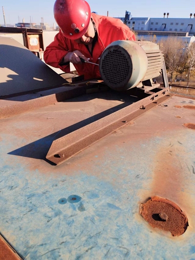 員工食堂樓頂排風機不能正常運行,生產(chǎn)協(xié)同部鉗工將風機軸拆下找到焊工進行補焊,然后車削加工,及時搶修安裝完畢,確保員工食堂正常排風。