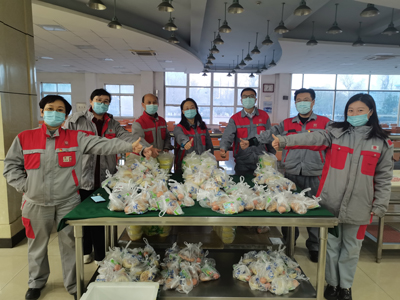 高純鉻產(chǎn)品事業(yè)部在廠區(qū)居住的黨員邸馥郁在家做好飯菜帶給留宿員工;黨員閆忠偉炸好肉醬,帶上爽口的青菜,和留宿員工共同改善伙食。國貿(mào)公司黨員魏蘭在無法到崗情況下,自發(fā)安排家人為在崗同事送來4箱水果。