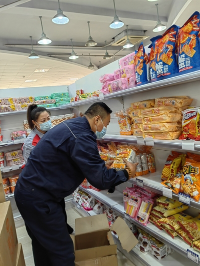 錳產(chǎn)品事業(yè)部設(shè)備科科長王寶權(quán)帶著沈彥亭和劉鐵,在休息時間幫助員工食堂超市整理貨架,盡可能分擔食堂人員的辛勞。