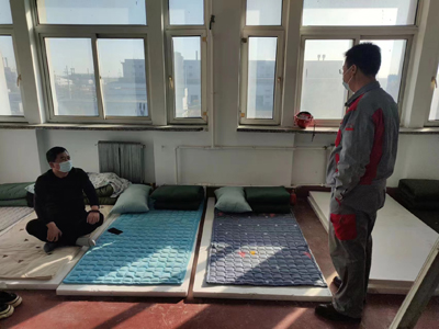 部分廠內(nèi)集中住宿點溫度低,相關(guān)部門緊急安排外接電源,為員工加急采購電暖氣,確保留宿員工后半夜不再受涼。