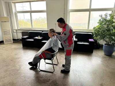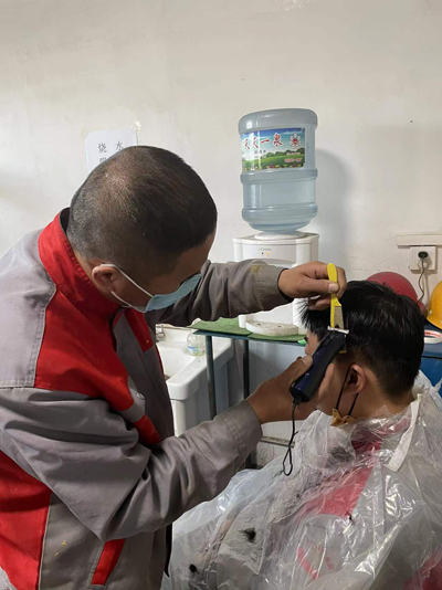 疫情封控期間員工無法理發(fā),為員工服務的理發(fā)室在基層組建。很多員工笑著說,“好心情一定從頭開始!