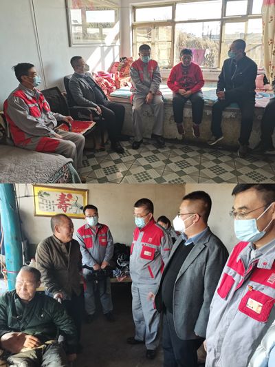 在西白廟子村支部,書記兼主任車永成簡要介紹了全村基本情況,并代表16戶慰問家庭對公司關懷表示感謝。走進李春芬、耿慶林的家中,公司領導將承載著員工愛心的米、面、油、調料包以及過冬衣物等生活物資送到他們手中,與老人們親切交談,詳細了解他們的身體狀況,詢問生活中的實際困難,讓老人們感受到了來自國有央企大家庭的溫暖與關懷。
