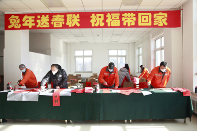 喜氣臨門(mén)紅色妍,家家戶(hù)戶(hù)貼春聯(lián);舊年辭別迎新歲,時(shí)序車(chē)輪總向前。為增強(qiáng)新春佳節(jié)喜慶祥和的氛圍 ,1月16日,由公司工會(huì)主辦、文學(xué)藝術(shù)協(xié)會(huì)承辦的“兔年送春聯(lián)”活動(dòng)在員工食堂舉辦。公司工會(huì)主席秦樹(shù)強(qiáng)親臨活動(dòng)現(xiàn)場(chǎng),并自備一份禮品,為員工送上新春的祝福。