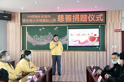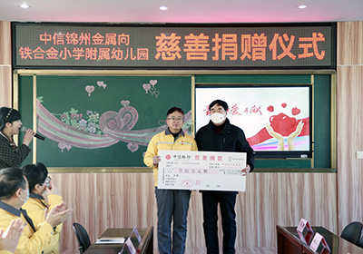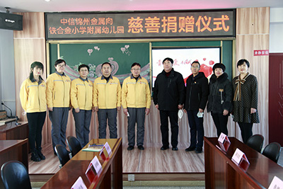 1月18日,公司黨委書記、總經(jīng)理崔傳海,紀委書記、工會主席秦樹強在鐵合金小學(xué)附屬幼兒園會議室出席慈善捐贈儀式,將10萬元慈善金交到鐵合金小學(xué)黨委書記、校長,附屬幼兒園園長魯?shù)戮檬种,充分體現(xiàn)國有企業(yè)對地方幼兒教育的支持和關(guān)心。