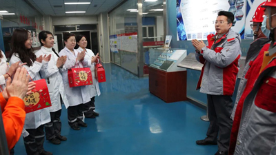 每到一處,公司領(lǐng)導(dǎo)為一線員工送去新春祝福的同時(shí),還特別感謝他們犧牲與家人團(tuán)聚的時(shí)間堅(jiān)守崗位,并通過他們向一直以來默默支持公司發(fā)展的家屬致以誠(chéng)摯的節(jié)日問候。