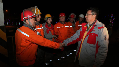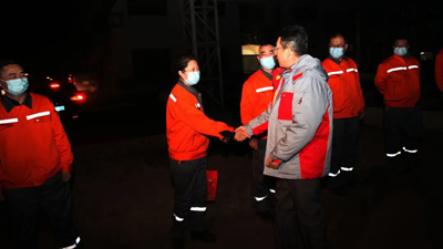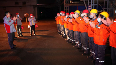 在釩產(chǎn)品事業(yè)部,公司領(lǐng)導(dǎo)與堅(jiān)守崗位的員工握手問候,感謝他們?cè)谶^去一年的辛苦付出,希望繼續(xù)保持旺盛的戰(zhàn)斗意志,攜手迎接更大的挑戰(zhàn)。