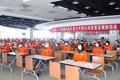 會議在員工食堂同步設(shè)立騰訊視頻分會場,公司領(lǐng)導(dǎo)班子成員與340余名員工代表共同出席會議。