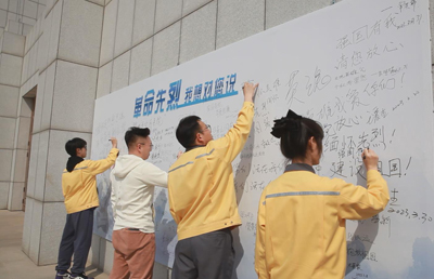 活動(dòng)現(xiàn)場(chǎng),團(tuán)員青年高舉右拳重溫入團(tuán)誓言,再一次表達(dá)了繼承烈士遺志,學(xué)先鋒、做先鋒的堅(jiān)定決心。隨后全體人員向烈士紀(jì)念碑敬獻(xiàn)鮮花并默哀,表達(dá)對(duì)革命先烈崇高的敬意和深切緬懷。參加人員在“革命先烈我想對(duì)您說(shuō)”留言板上留下“請(qǐng)黨放心,強(qiáng)國(guó)有我”“緬懷英烈,建設(shè)祖國(guó)”的錚錚誓言;團(tuán)員代表發(fā)言,表達(dá)新時(shí)代青年繼承先烈遺志,發(fā)揚(yáng)先烈精神,銘記新時(shí)代使命,立足崗位爭(zhēng)做貢獻(xiàn)的決心。