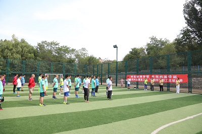 綠茵馳騁夢(mèng)想,共祝祖國(guó)華誕。9月22日,歷時(shí)5天的第三屆“馳騁杯”5人制足球團(tuán)體賽圓滿落幕。公司黨委書記、總經(jīng)理崔傳海應(yīng)邀為首場(chǎng)比賽開球,并與紀(jì)委書記、工會(huì)主席秦樹強(qiáng)觀摩比賽,為獲獎(jiǎng)代表隊(duì)頒獎(jiǎng)。