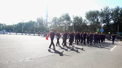 由安全環(huán)保部員工組成的國旗護衛(wèi)隊,邁著整齊的步伐,護衛(wèi)五星紅旗走向升旗臺。五星紅旗在雄壯的國歌聲中冉冉升起,現(xiàn)場人員面向國旗肅立,表達著對祖國最崇高的敬意。