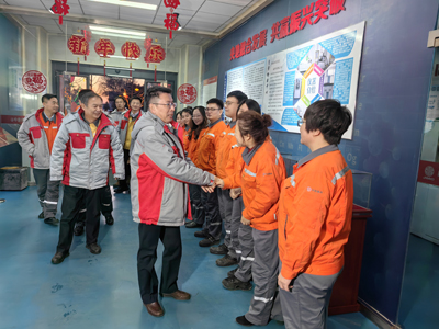 歲末寒冬辭舊歲,奮楫爭(zhēng)先迎新年。1月28日,又值一年新春除夕夜,董事長(zhǎng)呂衍蒸與兩公司領(lǐng)導(dǎo)秦樹(shù)強(qiáng)、王剛、王亮、陳海宇、張玉馳走進(jìn)一線,親切慰問(wèn)堅(jiān)守崗位員工,向大家致以新春?jiǎn)柡颍蜕厦篮米8,?duì)大家過(guò)去一年為公司生產(chǎn)經(jīng)營(yíng)、挖潛增效、改革創(chuàng)新付出的努力、作出的貢獻(xiàn)表示衷心感謝。