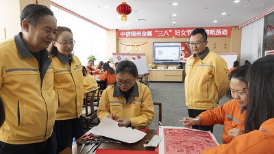 為慶!叭恕眹H婦女節(jié),傳承中華優(yōu)秀傳統(tǒng)文化,展現(xiàn)新時(shí)代女性的匠心與風(fēng)采,3月7日,公司工會(huì)在中信錦州大廈職工之家舉辦“巾幗綻芳華 建功新時(shí)代”特色剪紙活動(dòng)。中信金屬集團(tuán)黨委副書記李玲,公司黨委書記、總經(jīng)理崔傳海分別代表中信金屬集團(tuán)黨委和公司黨委向全體女職工致以最誠摯的節(jié)日祝福,向在崗位上辛勤工作的女職工致以崇高的敬意。公司黨委副書記張輝,紀(jì)委書記、工會(huì)主席秦樹強(qiáng)來到活動(dòng)現(xiàn)場,與大家親切互動(dòng)。
