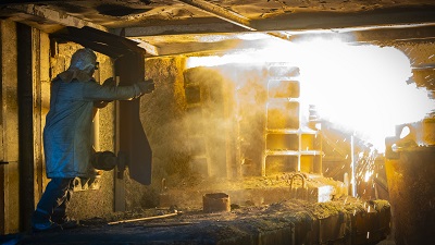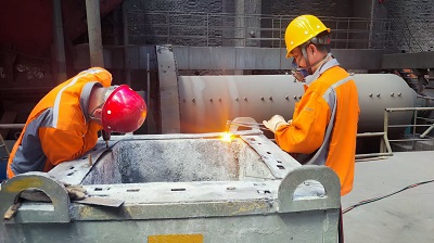 金屬鉻產(chǎn)品事業(yè)部冶煉車間爐上、爐下的崗位員工時刻與高溫為伴,熔融的鐵水旁、火紅的鉻錠邊、悶熱的爐殼內(nèi),到處都是他們忙碌的身影。一次冶煉過程中,負責(zé)澆注的葫蘆吊突然出現(xiàn)故障,為保證產(chǎn)品產(chǎn)量及質(zhì)量,班長立即組織員工進行現(xiàn)場搶救,他們將待澆冶煉爐立即拉出冶煉間,在爐外實現(xiàn)異地澆注,冶煉工頂著熾熱氣息進行搭建流槽、捅爐眼操作,瞬間的高溫使冶煉工的汗水如同斷線的珠子,不斷從額頭滑落,卻絲毫未減緩他們工作的步伐。在大家的緊密協(xié)作下,順利完成了澆注任務(wù),保證了生產(chǎn)穩(wěn)定運行。
